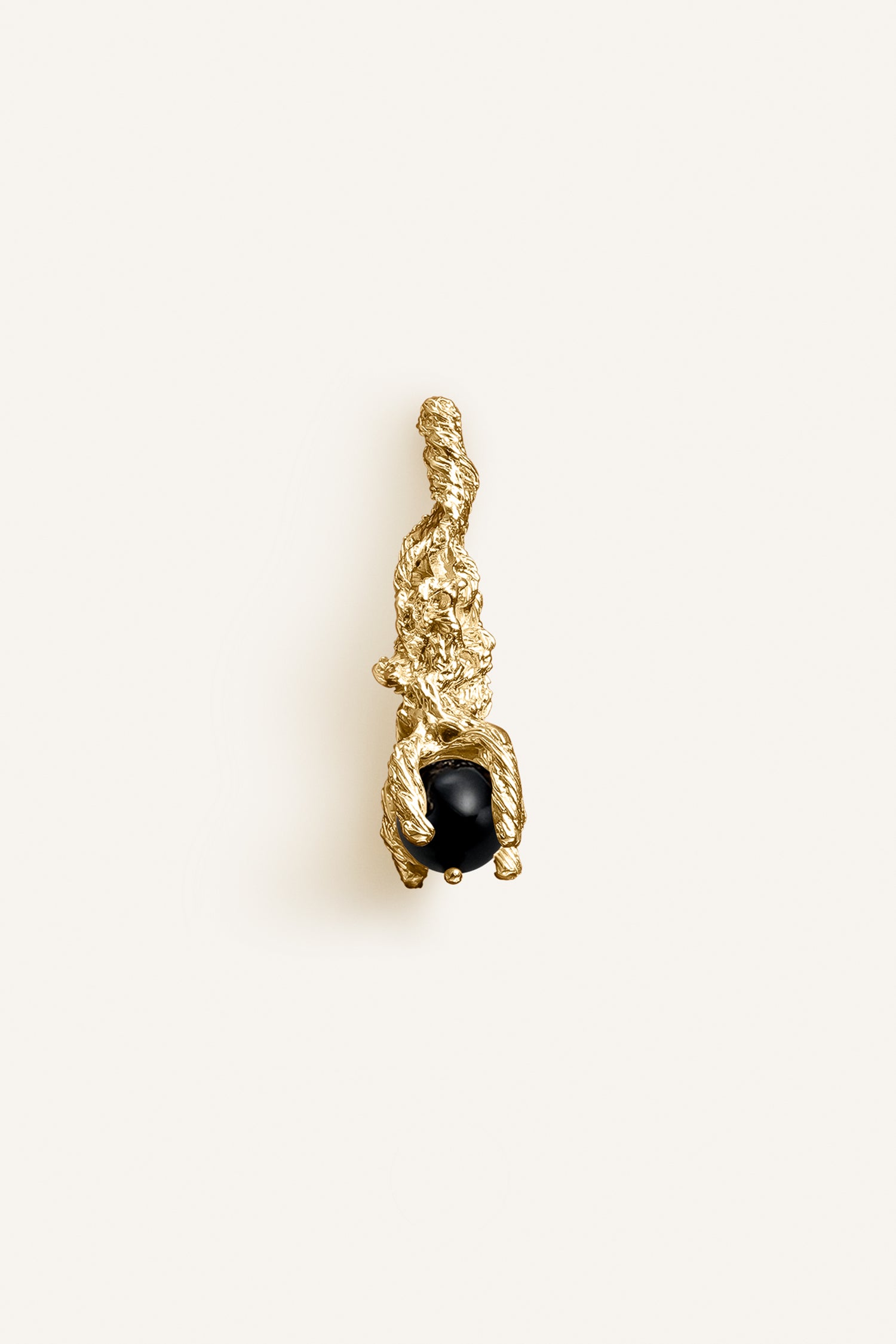 El pendiente Paloma S Ónix combina la sofisticación del latón bañado en oro de 18 quilates con la fuerza del ónix natural en una sola bola. Una pieza minimalista y elegante, perfecta para quienes buscan un detalle sutil pero con personalidad.