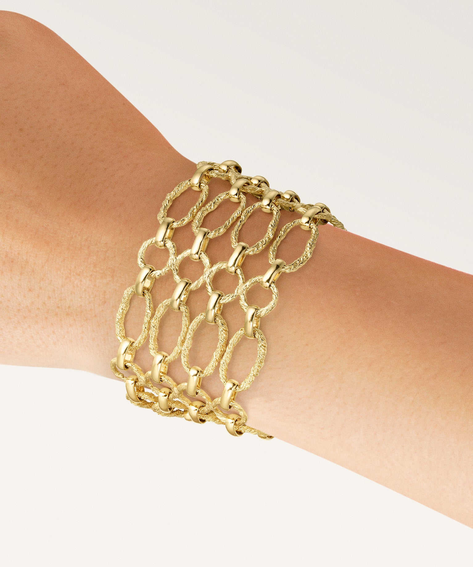 Las formas entrelazadas y los eslabones dorados evocan la conexión entre tradición e innovación, entre el pasado que nos define y el futuro que construimos. Sonia es sofisticación sin esfuerzo, presencia sin excesos, un equilibrio perfecto entre carácter y elegancia.