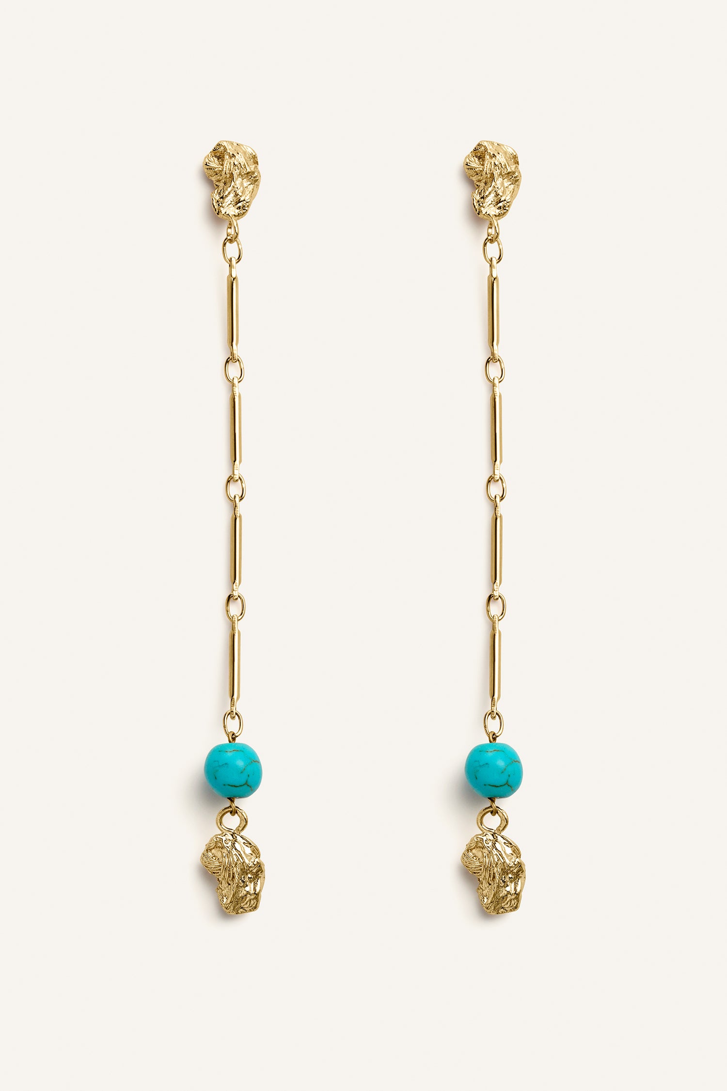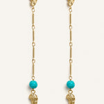 La piedra turquesa aporta un acento de color elegante y equilibrado, mientras que su silueta alargada confiere a la pieza un carácter refinado y contemporáneo, ideal para elevar cualquier look con discreción y distinción.